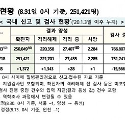 코로나19 국내 확진환자 총 251421명 및 격리해제 221701명·사망 2285명, 8월 31일 0시 기준 1372명 추가 확인