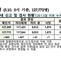 코로나19 국내 확진환자 총 127772명 및 격리해제 117844명·사망 1875명, 5월 10일 0시 기준 463명 추가 확인
