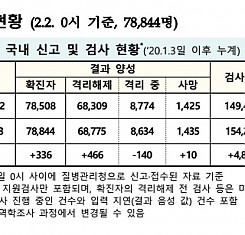 코로나19 국내 확진환자 총 78844명 및 격리해제 68775명·사망 1435명, 2월 2일 0시 기준 336명 추가 확인