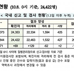 코로나19 국내 확진환자 총 24422명 및 격리해제 22463명·사망 427명, 10월 8일 0시 기준 69명 추가 확인