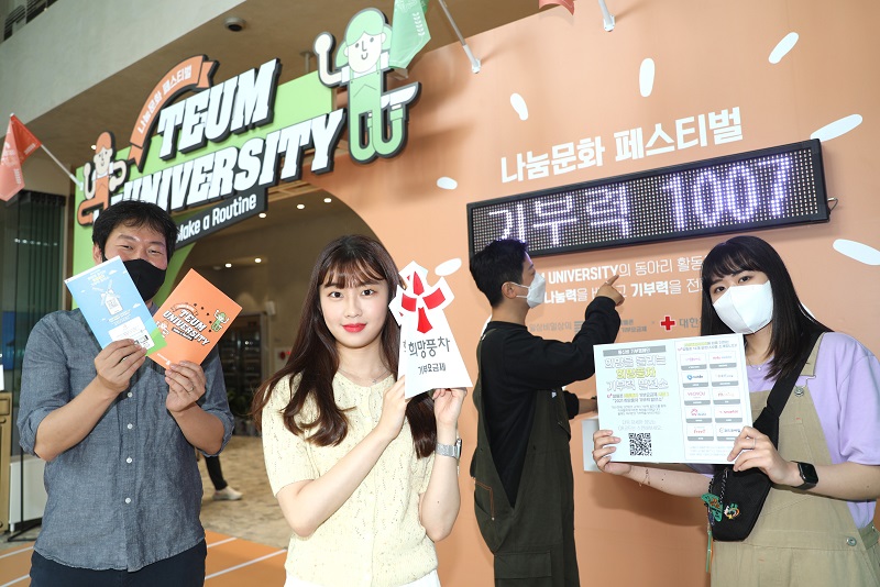 아울러 LG유플러스는 기부를 주제로 MZ세대들을 위한 오프라인 소통 행사도 운영한다. 고객들은 오는 14일까지 강남역 인근 복합문화공간 ‘일상비일상의틈’에서 체험형 나눔 문화 활동에 참여할 수 있다. 현장에서는 기부 용품을 구매하는 물적나눔, 사고대응·응급처치 등에 대한 교육을 받는 인적나눔, 혈액형 알파벳을 딴 비즈를 통해 팔찌를 만드는 생명나눔 행사가 진행된다. 특히 각 행사는 대학교 내 동아리에서 새내기를 모집하는 컨셉으로 꾸려지고, 동아리 가입신청이 곧 기부활동이 되도록 구성해 MZ세대들에게 호응을 얻을 것으로 기대된다.
