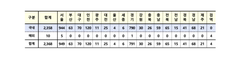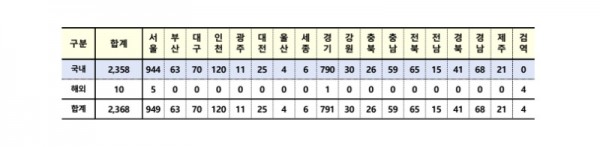 질병관리청 중앙방역대책본부는 2021년 11월 11일 0시 부터 11월 12일 0시까지 확진자 2,368명이 추가로 확인되었다고 밝혔다.