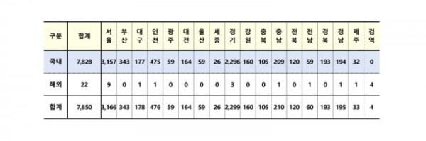 지역별로 살펴보면 2021년 12월 15일(수) 0시 기준 신규 7,850명으로 서울 3166, 경기 2299, 인천 476, 부산 343, 대구 178, 광주 59, 대전 164, 울산 59, 세종 26, 강원 160, 충북 105, 충남 210, 전북 120, 전남 60, 경북 193, 경남 195, 제주 33, 검역 22명이다. 이 중 해외유입은 22명(서울 9, 경기 3, 인천 1, 부산 0, 대구 1, 광주 0, 대전 0, 울산 0, 세종 0, 강원 0, 충북 0, 충남 1, 전북 0, 전남 1, 경북 0, 경남 1, 제주 1, 검역 4), 지역발생은 7,828명(서울 3157, 경기 2296, 인천 475, 부산 343, 대구 177, 광주 59, 대전 164, 울산 59, 세종 26, 강원 160, 충북 105, 충남 209, 전북 120, 전남 59, 경북 193, 경남 194, 제주 32)이 확인되며 전 세계적으로 코로나19가 빠르게 확산되는 가운데 해외유입에 따른 검역에서 확진자는 줄었으며 최근에는 코로나19 예방접종이 진행되는 가운데 지역 사회 감염이 증가 추세다.
