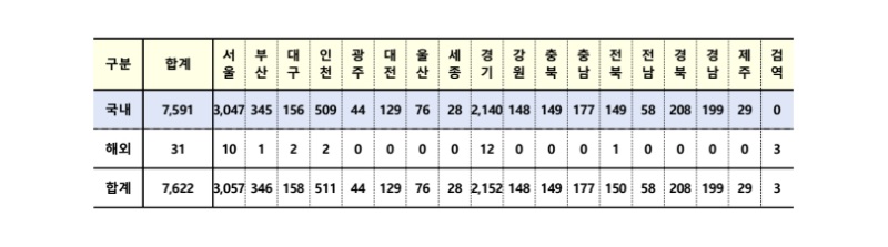 질병관리청 중앙방역대책본부는 2021년 12월 15일(수) 0시 부터 12월 16일(목) 0시까지 확진자 7,622명이 추가로 확인되었다고 밝혔다.