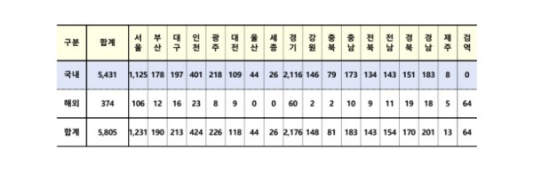 지역별로 살펴보면 2022년 1월 19일(수) 0시 기준 신규 5,805명으로 서울 1231, 경기 2176, 인천 424, 부산 190, 대구 213, 광주 226, 대전 118, 울산 44, 세종 26, 강원 148, 충북 81, 충남 183, 전북 143, 전남 154, 경북 170, 경남 201, 제주 13, 검역 374명이다. 이 중 해외유입은 374명(서울 79, 경기 60, 인천 19, 부산 12, 대구 9, 광주 10, 대전 7, 울산 2, 세종 2, 강원 0, 충북 4, 충남 5, 전북 4, 전남 1, 경북 9, 경남 8, 제주 1, 검역 77), 지역발생은 5,431명(서울 1125, 경기 2116, 인천 401, 부산 178, 대구 197, 광주 218, 대전 109, 울산 44, 세종 26, 강원 146, 충북 79, 충남 173, 전북 134, 전남 143, 경북 151, 경남 183, 제주 8)이 확인되며 전 세계적으로 코로나19가 빠르게 확산되는 가운데 해외유입에 따른 검역에서 확진자는 줄었으며 최근에는 코로나19 예방접종이 진행되는 가운데 지역 사회 감염이 증가 추세다.