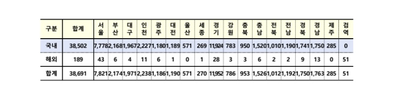 지역별로 살펴보면 2022년 2월 6일(일) 0시 기준 신규 38,691명으로 서울 7821, 경기 11952, 인천 2238, 부산 2174, 대구 1971, 광주 1186, 대전 1190, 울산 571, 세종 270, 강원 786, 충북 953, 충남 1526, 전북 1012, 전남 1192, 경북 1750, 경남 1763, 제주 285, 검역 189명이다. 이 중 해외유입은 189명(서울 43, 경기 28, 인천 11, 부산 6, 대구 4, 광주 6, 대전 1, 울산 0, 세종 1, 강원 3, 충북 3, 충남 6, 전북 2, 전남 2, 경북 9, 경남 13, 제주 0, 검역 51), 지역발생은 38,502명(서울 7778, 경기 11924, 인천 2227, 부산 2168, 대구 1967, 광주 1180, 대전 1189, 울산 571, 세종 269, 강원 783, 충북 950, 충남 1520, 전북 1010, 전남 1190, 경북 1741, 경남 1750, 제주 285)이 확인되며 전 세계적으로 코로나19가 빠르게 확산되는 가운데 해외유입에 따른 검역에서 확진자는 줄었으며 최근에는 코로나19 예방접종이 진행되는 가운데 지역 사회 감염이 증가 추세다.
