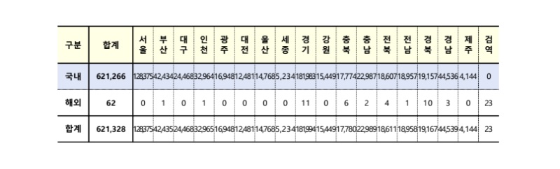 질병관리청 중앙방역대책본부는 2022년 3월 16일(수) 0시 부터 3월 17일(목) 0시까지 확진자 621,328명이 추가로 확인되었다고 밝혔다.