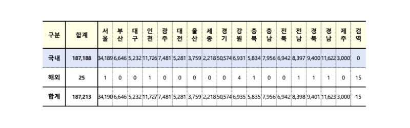 질병관리청 중앙방역대책본부는 2022년 3월 27일(일) 0시 부터 3월 28일(월) 0시까지 확진자 187,213명이 추가로 확인되었다고 밝혔다.
