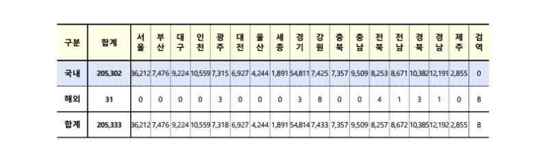 질병관리청 중앙방역대책본부는 2022년 4월 7일(목) 0시 부터 4월 8일(금) 0시까지 확진자 205,333명이 추가로 확인되었다고 밝혔다.
