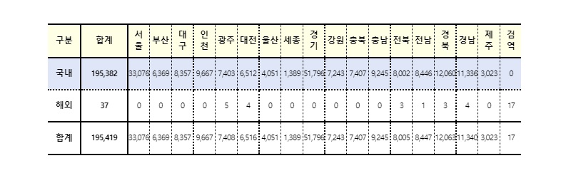 질병관리청 중앙방역대책본부는 2022년 4월 12일(화) 0시 부터 4월 13일(수) 0시까지 확진자 195,419명이 추가로 확인되었다고 밝혔다.