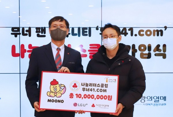 사랑의열매 회관에서 열린 기부금 전달식에는 이상수 LG유플러스 캐릭터마케팅팀장, 이정윤 사랑의열매 전략모금본부장 등 주요 관계자와 ‘무너41.com’(무너 팬 커뮤니티 명칭)을 대표해서 이정민 씨가 참석했다.