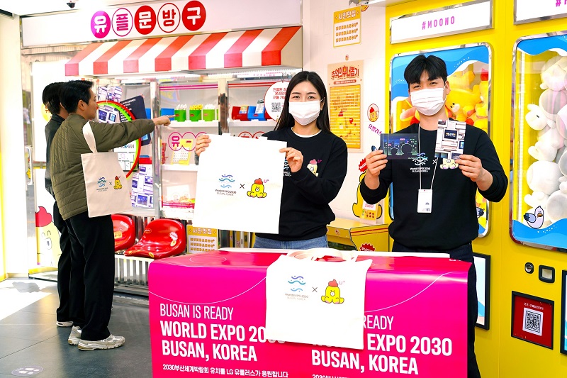 LG유플러스, LG Uplus, LG U+, 2030 부산세계박람회, 부산엑스포, 유치 기원, 무너, 한정판, 에코백, 선물, 이벤트, 진행