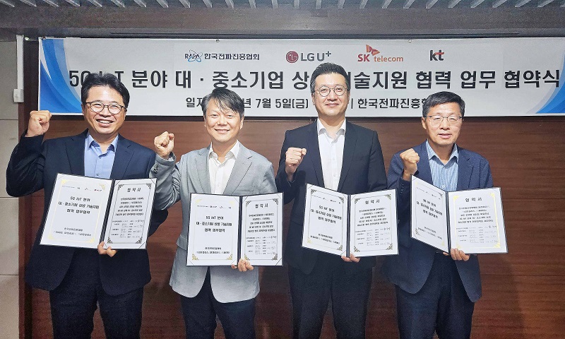 LG유플러스(www.lguplus.com/대표 황현식)를 비롯한 통신 3사와 한국전파진흥협회(협회장 황현식, 이하 RAPA)가 통신 관련 제품을 개발하는 중소기업의 기술 육성을 위해 업무협약을 체결했다.