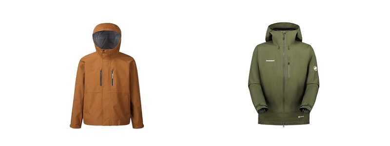 ▲ 고어텍스 소재를 적용한 (좌) 살로몬 ‘UNI 레이스플래그 GTX 3L 자켓’, (우) 마무트 ‘아야코 프로 2.0 하드쉘 후드 자켓’