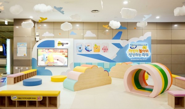 LG유플러스(www.lguplus.com)의 키즈 전용 플랫폼 아이들나라가 한국공항공사와 손잡고 김해국제공항에 유아동 전용 놀이터 ‘상상하는 하늘’을 구축했다. 김해국제공항 국제선을 이용하는 유아동 동반 고객이라면 누구나 비행기 탑승 전 놀이터에서 아이들나라 교육 콘텐츠를 시청하고 신체활동을 하며 대기 시간을 보낼 수 있다.