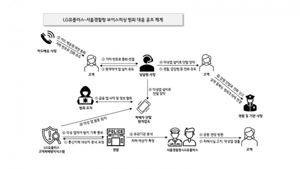 이후 LG유플러스의 고객피해방지시스템이 악성 앱 활동을 포착하면, 경찰은 유관기관과의 추가 분석을 실시하고, LG유플러스와 피해 예상자를 방문하는 공조가 이뤄지는 것이다.