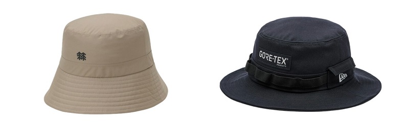 ▲ (왼쪽부터) 고어텍스 소재가 적용된 코오롱스포츠의 '고어텍스 버킷햇', 뉴에라의 '아웃도어 고어텍스 리플렉티브 로고 어드벤처 버킷햇'