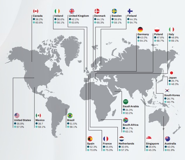 이번 연구조사는 지난해 11월부터 12월까지, 미주, 아시아-태평양, 유럽, 중동 및 아프리카에 위치한 21개 시장의 18~44세 소비자 15,461명을 대상으로 설문 방식으로 진행됐다. 의류의 구매부터 착용, 수선, 재사용 및 재활용에 이르는 전 생애주기에 걸친 응답자의 행동을 분석했다.