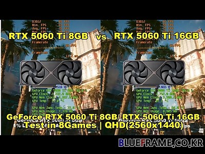 NVIDIA GeForce RTX 5060 Ti 8GB vs GeForce RTX 5060 Ti 16GB + R5 9600X | Test in 8 Games | QHD(2560x1440)